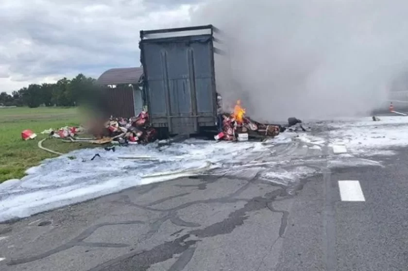 В Кобринском районе прямо во время движения загорелась фура с грузом