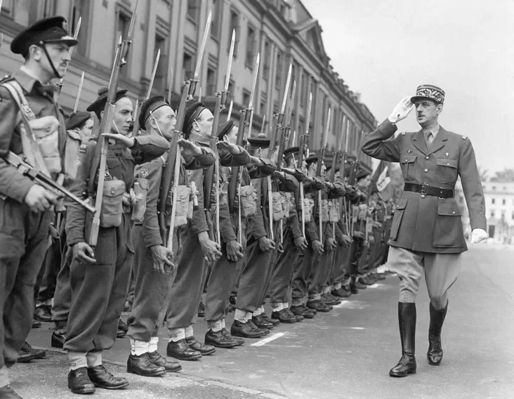 Его обращения по радио стали настоящим феноменом той войны. Однако де Голль был не только голосом надежды, но и создателем армии. Он назвал свое движение «Свободная Франция». Сначала к нему присоединилось всего около 1200 человек — немного для великой нации, но де Голль не сдавался. Он обращался по радио к французам во всем мире.
