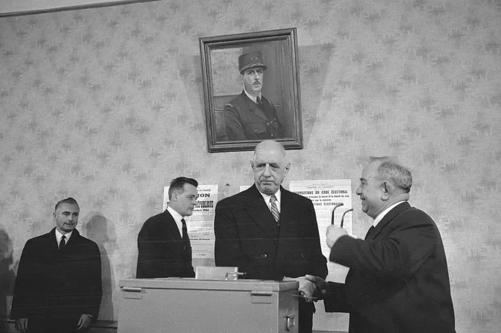 Завершив алжирское дело, Де Голль взялся за укрепление своей власти. В 1962 году он инициировал референдум о введении прямых всеобщих выборов президента. Несмотря на яростное сопротивление политиков, народ снова его поддержал.