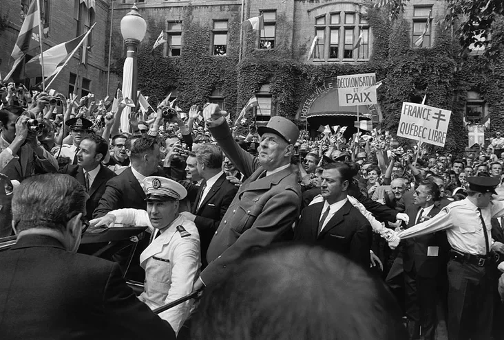 Эта линия продолжилась и в других частях света. В 1966 году в Пномпене де Голль резко осудил американское вмешательство во Вьетнам. В 1967-м, во время Шестидневной войны, он дистанцировался от Израиля и ввел эмбарго на поставки ему оружия. А в июле того же года вызвал дипломатический скандал, произнеся в Канаде лозунг: «Да здравствует свободный Квебек!»