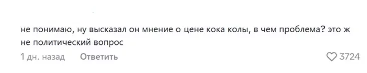 «Не понимаю, ну высказал он мнение о цене кока-колы. В чем проблема? Это же не политический вопрос».