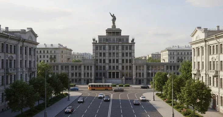 Теперь эту «бумажную архитектуру» способен оживить искусственный интеллект. Подборку наиболее значимых нереализованных проектов, обработанных нейросетями, опубликовал телеграм-канал «Беларускі піонэр».