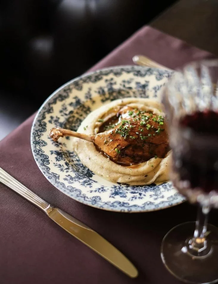Сейчас ресторан участвует в проекте высокой кухни и предлагает посетителям изысканный сет по цене 99 рублей (рассчитанные порции на одного человека). Дополнить его предлагают шампанским (35 рублей за 125 миллилитров) или коньяком (21 рубль за 40 миллилитров).
