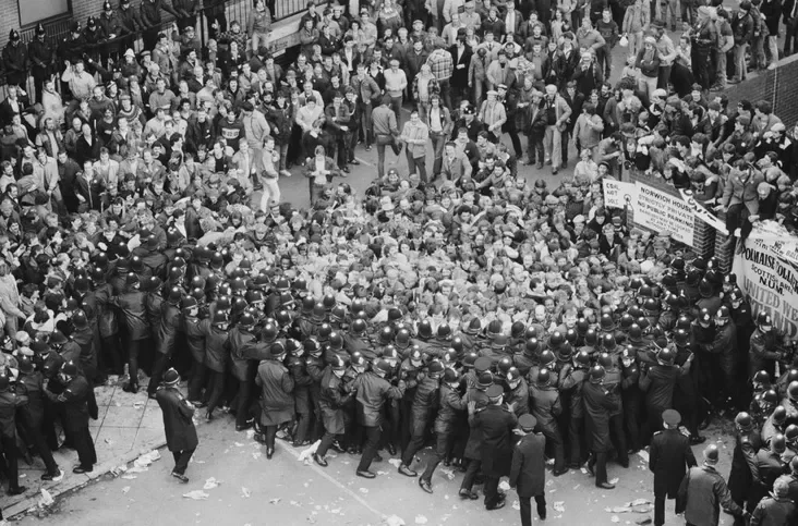 Особенно жёсткой была её борьба с профсоюзами, в которых она видела главное препятствие для модернизации. Её правительство приняло ряд законов, которые существенно ограничили полномочия профсоюзов. А кульминацией стала забастовка шахтёров 1984—1985 годов — крупнейший социальный конфликт в послевоенной истории Британии. После года противостояния профсоюз потерпел поражение: многочисленные нерентабельные шахты были закрыты, а влияние тред-юнионов навсегда ослабло.