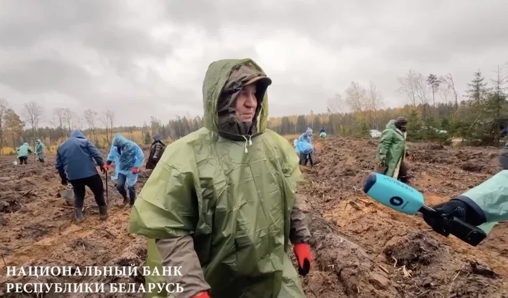 В дождевиках и по колено в грязи. Чиновников под дождем погнали на субботник, сам Лукашенко не пошел