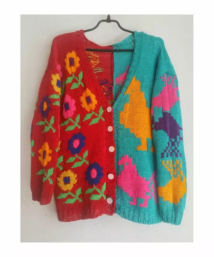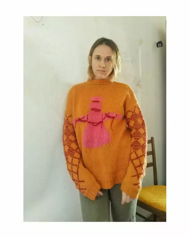 Яркие и уникальные вещи — в единственном экземпляре — создает Светлана Станкевич. В ее портфолио как свитеры с мотивами белорусских ковров, так и с орнаментом, аистами, свеклой или куклами-оберегами (а еще — с узнаваемыми уже пенисами).
