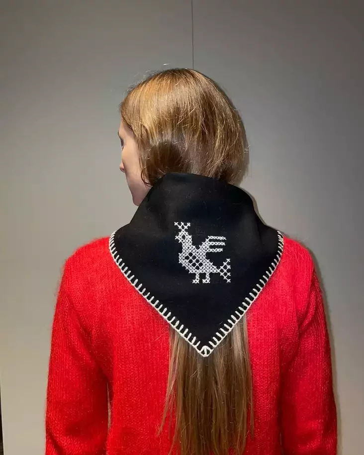Советуем обратить внимание на вещи от Катерины Петрович. Ее манишки или платки с вышивкой точно принесут вам звание стиляги района.
