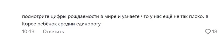 «Посмотрите цифры рождаемости в мире, и узнаете, что у нас еще не так плохо. В Корее ребенок сродни единорогу».