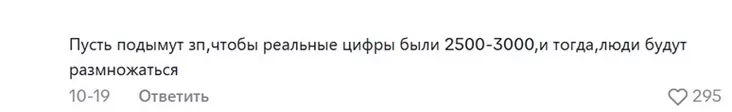 Люди призывают: «Пусть поднимут ЗП, чтобы реальные цифры были 2500-3000, и тогда люди будут размножаться».