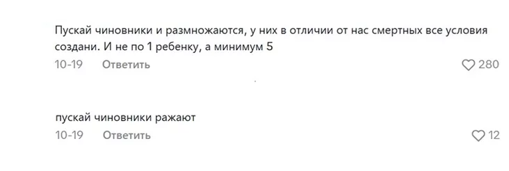 «Пусть чиновники и размножаются, у них, в отличие от нас, смертных, все условия созданы. И не по одному ребенку, а минимум пять».