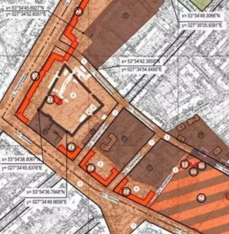 Согласно этому документу, участок на углу улиц Золотая Горка и Краснозвездной, где сейчас ведется строительство учебного учреждения для гэбистов, входит в охранную зону, на которой «запрещается строительство зданий и сооружений». Отдельно выделено бывшее католическое Золотогорское кладбище, в пределах которого запрещена даже прокладка инженерных коммуникаций.