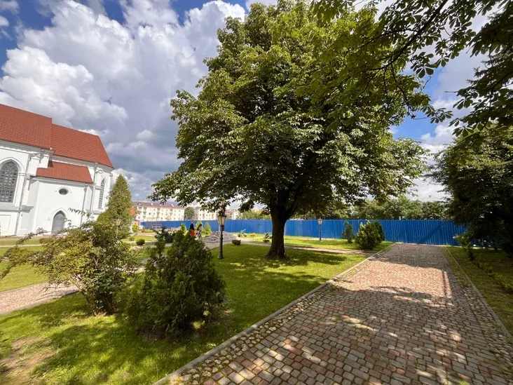 Парк, который хотел сделать приход на месте бывшего кладбища, — единственный законный вариант использования этой территории. Сегодня уже высаженные кусты и деревья пришлось срочно пересаживать в те части парка, которые остались за костелом, так как на них наступает стройка КГБ.