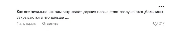 Наибольшее количество лайков набрало замечание: «Как все печально, школы закрывают, здания новые стоят разрушаются, больницы закрываются, а что дальше ….»