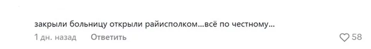 «Закрыли больницу, открыли райисполком… Все по-честному», — замечает другой пользователь.