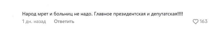 «Народ мрет, и больниц не надо. Главное президентская и депутатская!!!»