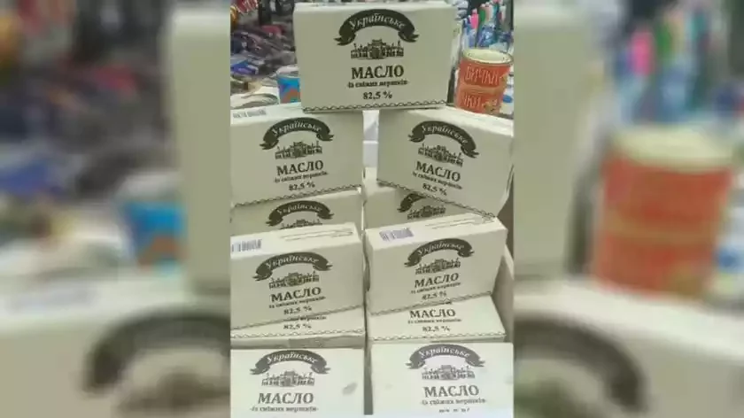 На одном из роликов — масло под названием «Українське» неизвестного производителя, но дизайн упаковки один в один как у белорусского масла «Брэст-Літоўск» от «Савушкина».