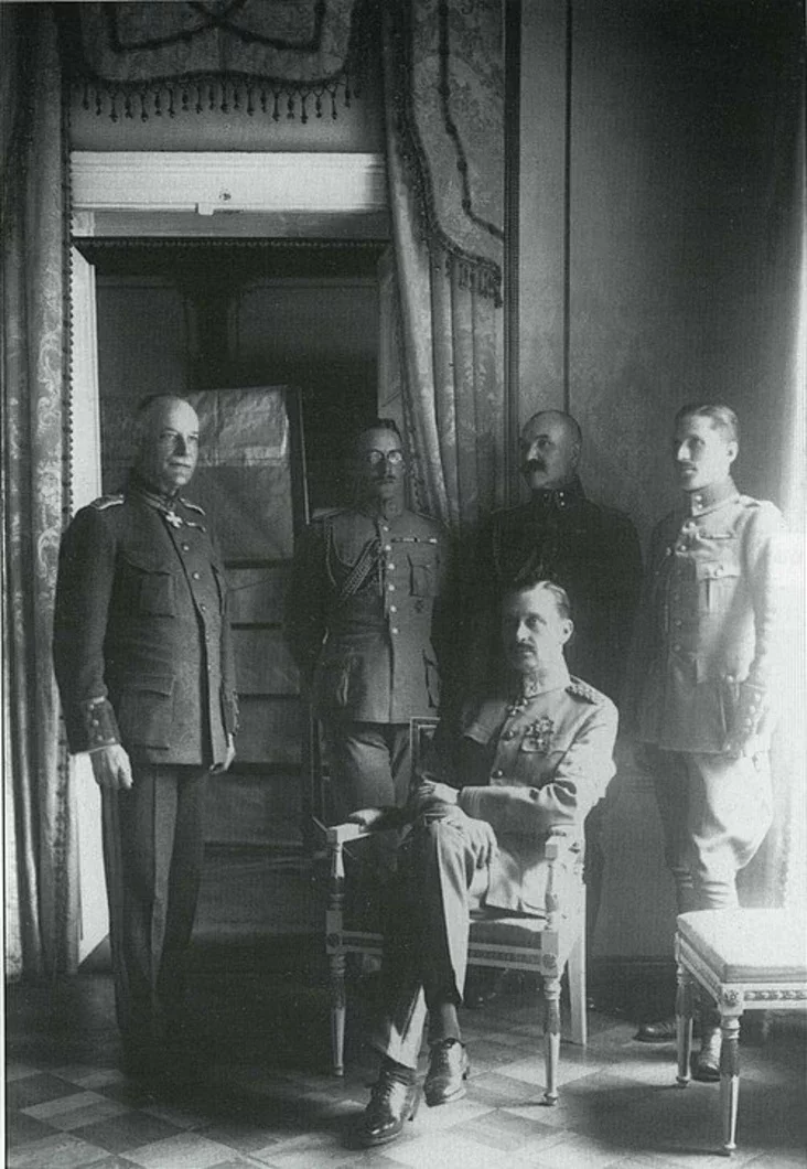 Регент Финляндии Карл Густав Маннергейм (сидит) со своими адъютантами. Фото: Wikimedia Commons