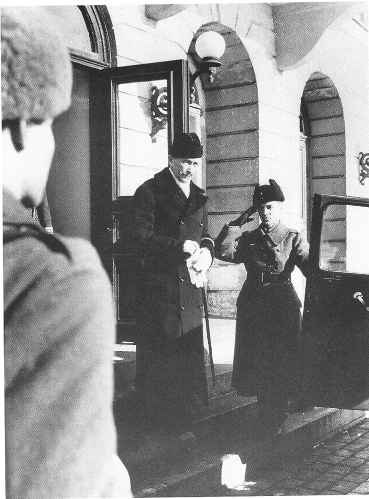 Карл Густав Маннергейм покидает Президентский дворец 4 марта 1946 года. Фото: Wikimedia Commons