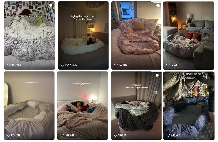 В TikTok стал популярным новый тренд «картофельная кровать» («potato bed») — способ обустроить свою постель так, чтобы чувствовать себя будто запеченная в фольге картофелина — полностью окруженная мягкостью и теплом. Пользователи, которые уже опробовали этот метод, в восторге делятся своим опытом, утверждая, что никогда не спали так хорошо.