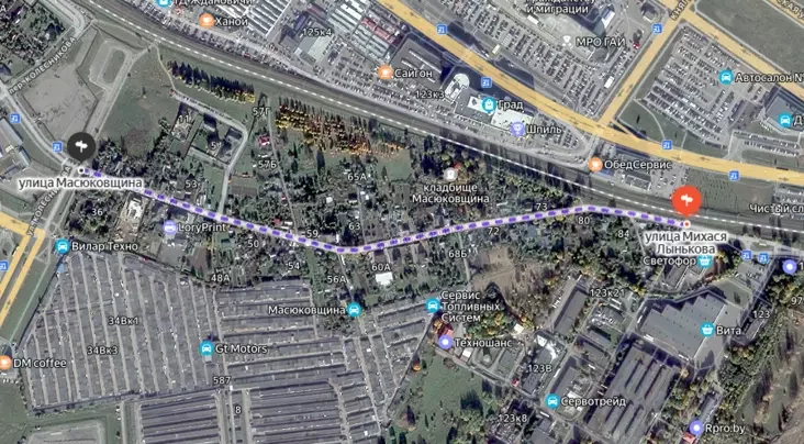 Однако, согласно проекту детальной планировки 2022 года, новая развязка не только не решает проблемы жителей улицы Масюковщина, но может сделать ее более острой. В проекте нет обещанного дублера вдоль железной дороги: близость сельского кладбища делает его прокладку невозможной.