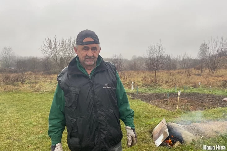 Около гаражей мужчина разжигает костер. Это — Лех Малашенский, местный солтыс, глава деревни.