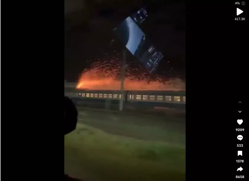 В тиктоке завирусилось видео, на котором под Брестом сняли пассажирский поезд, тянущий за собой столб огненных искр. Ролик, который пользователи тут же прозвали поездом призрачного гонщика, менее чем за сутки собрал почти 400 тысяч просмотров и огромную волну обсуждений, пишет издание «Первый».