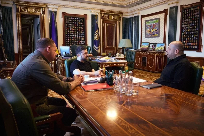 Андрей Ермак, Владимир Зеленский и Рустем Умеров. Фото: Zelenskiy/Offical Telegram Account/Anadolu via Getty Images