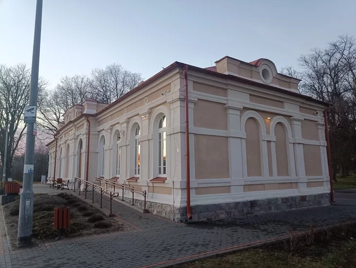 В Нурце вчера было мероприятие, посвященное истории этой железной дороги. Ну и я не удержался, чтобы не поехать. Встреча была в старом здании вокзала, которое сейчас принадлежит гмине. Здание это имеет статус культурной ценности, несколько лет назад его старательно отремонтировали — и поместили там центр культуры и библиотеку.