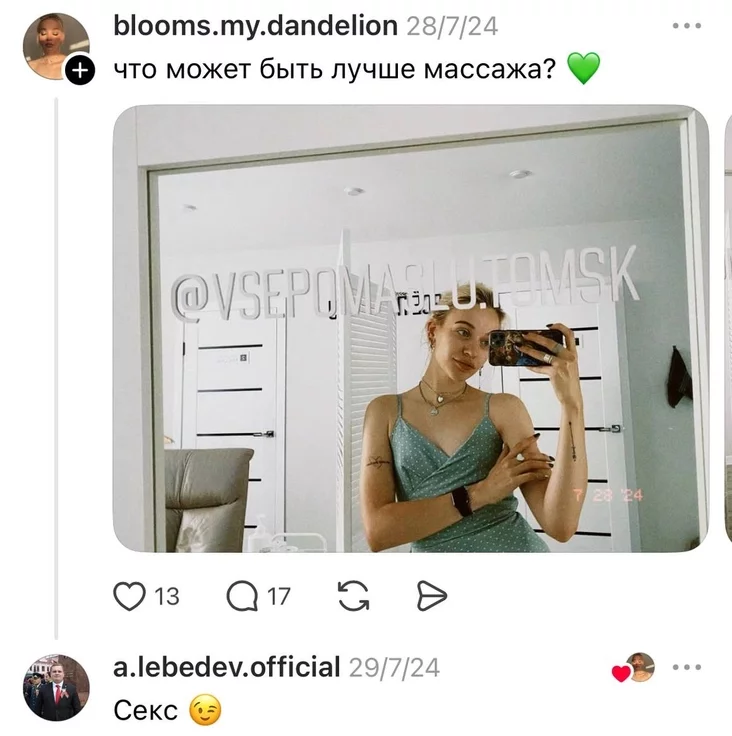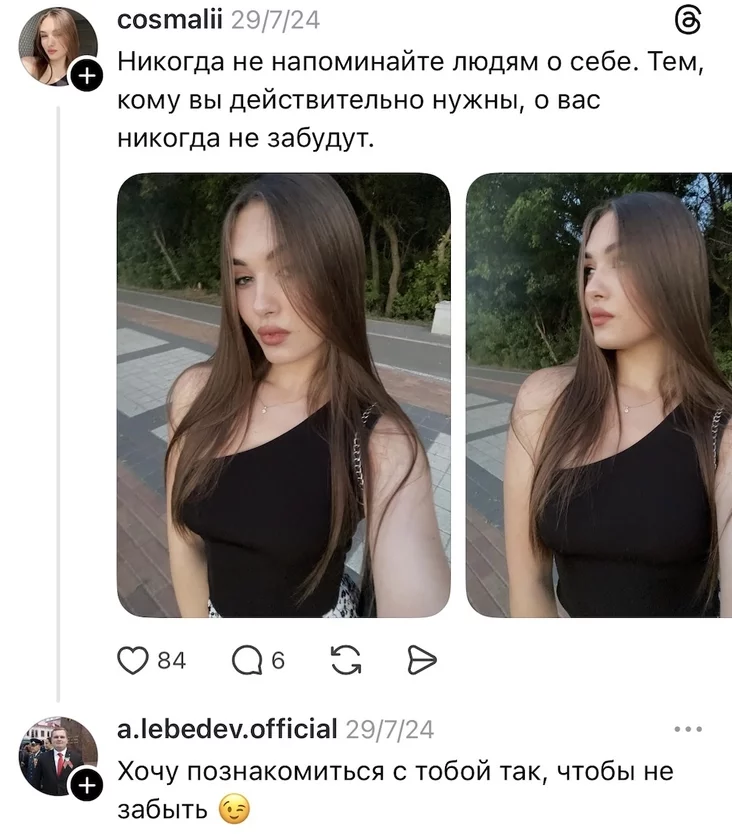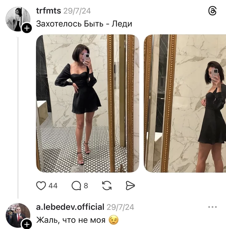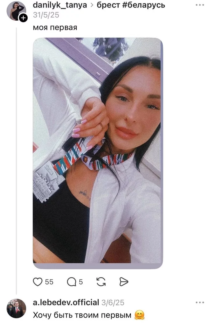 В соцсети Threads Александр Лебедев не проходит мимо аккаунтов белорусских красавиц — оставляет под многими постами сердечки и огоньки и намекает, что в поисках пары.