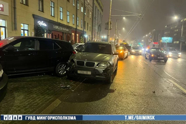 Водитель BMW X5 подбил две попутные машины и два стоявших автомобиля.