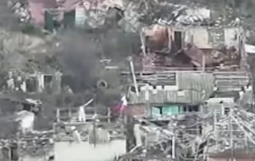 Российские военнослужащие пытались повесить в Волчанске российский государственный флаг, но в этот момент их атаковали украинцы.