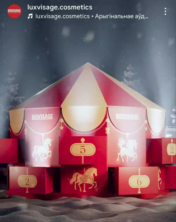 В этом году Luxvisage выпустил красивый подарочный набор косметики в виде карусели. Но количество их ограничено — часть подарили белорусским блогеркам, часть (50 штук) разыгрывают среди подписчиков. А вот купить нельзя.