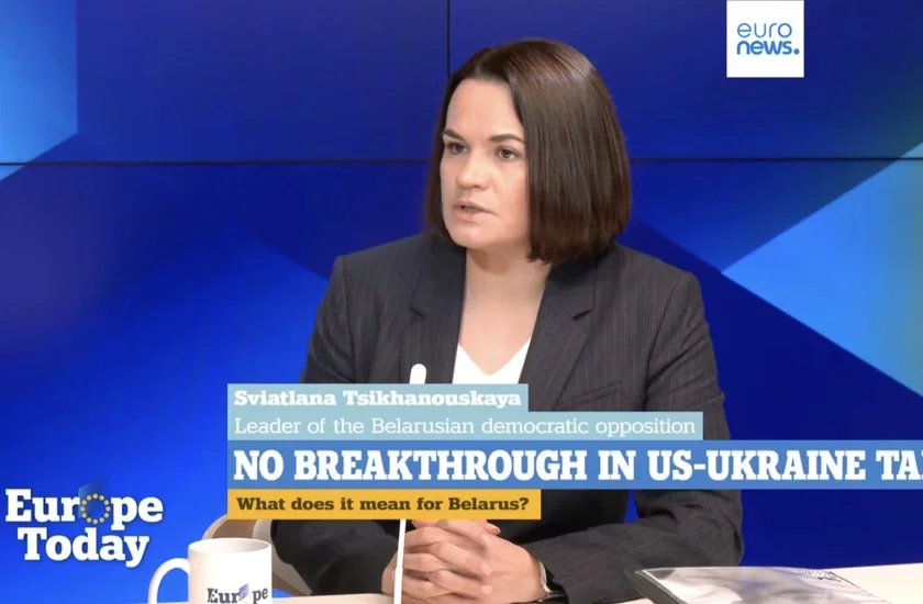 В разговоре с Euronews Светлана Тихановская подчеркнула важность учета белорусского вопроса при переговорах о мире в Украине и отметила необходимость установления долгосрочной безопасности в регионе: «Конечно, будущее нашей страны зависит от результатов войны в Украине. И, конечно, мы все хотим справедливого и прочного мира, а не просто временного затишья, которое даст России возможность перегруппироваться и снова начать атаковать.