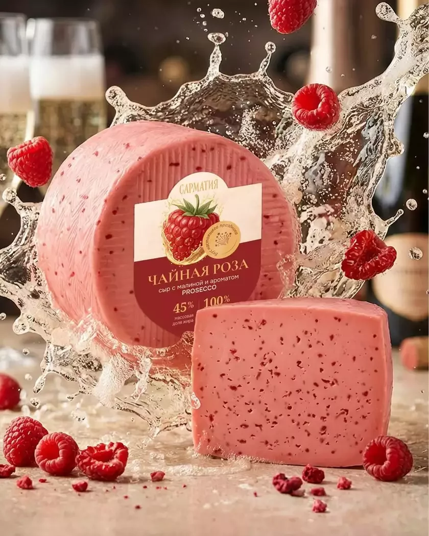 Бренд «Беловежские сыры» сообщил, что придал сыру яркий розовый цвет благодаря сублимированным ягодам. По словам производителя, вкус сочетает легкую малиновую кислинку и аромат итальянского просекко, хотя самого алкоголя в составе нет.