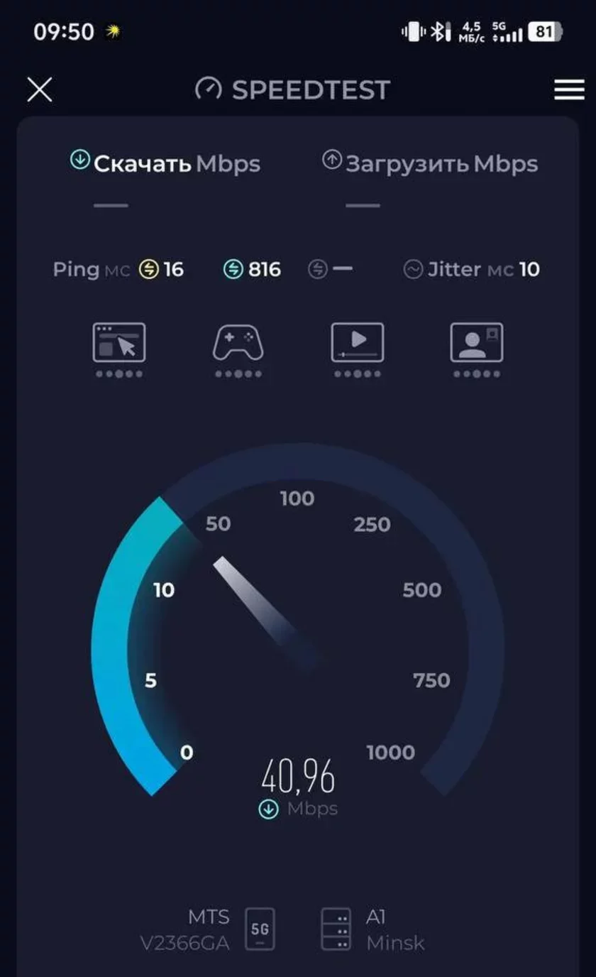 Как пишет Blizko.by, зоны 5G замечены у всех трех операторов сотовой связи (А1, МТС, Life), пользователи начали выкладывать скриншоты своих телефонов с замером скорости. Скорости эти, надо сказать, местами не слишком отличаются от тех, которые могут выдавать сети предыдущего поколения — 4G.