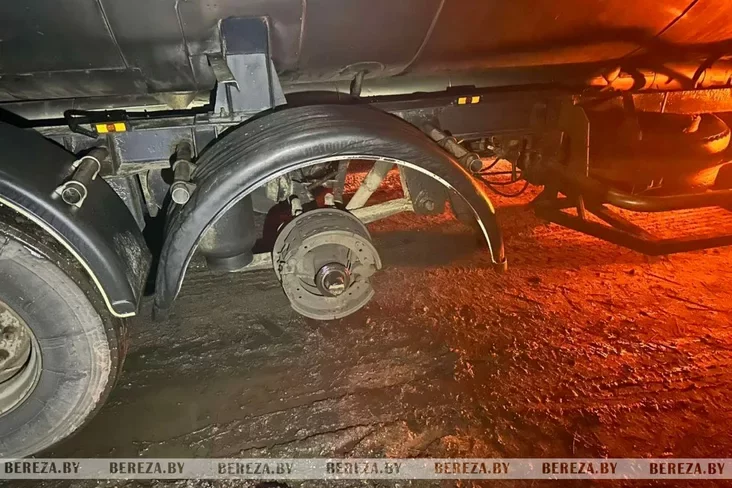 По предварительным данным, у автомобиля Scania, которым управлял 49‑летний житель Березы, во время движения по трассе на закруглении дороги сломался полуприцеп. В результате от передней оси отвалилось колесо, которое попало в здание местной амбулатории.