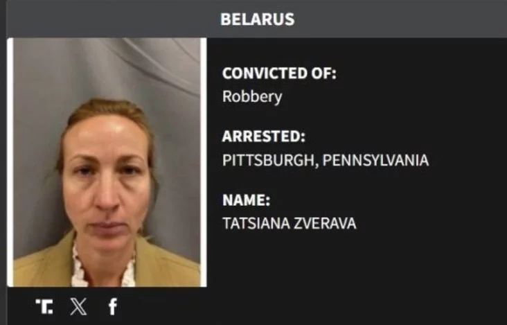 Вторая фигурантка — Татьяна Зверева (Tatsiana Zverava), осужденная по делу о грабеже. Ее задержали в Питтсбурге (штат Пенсильвания).