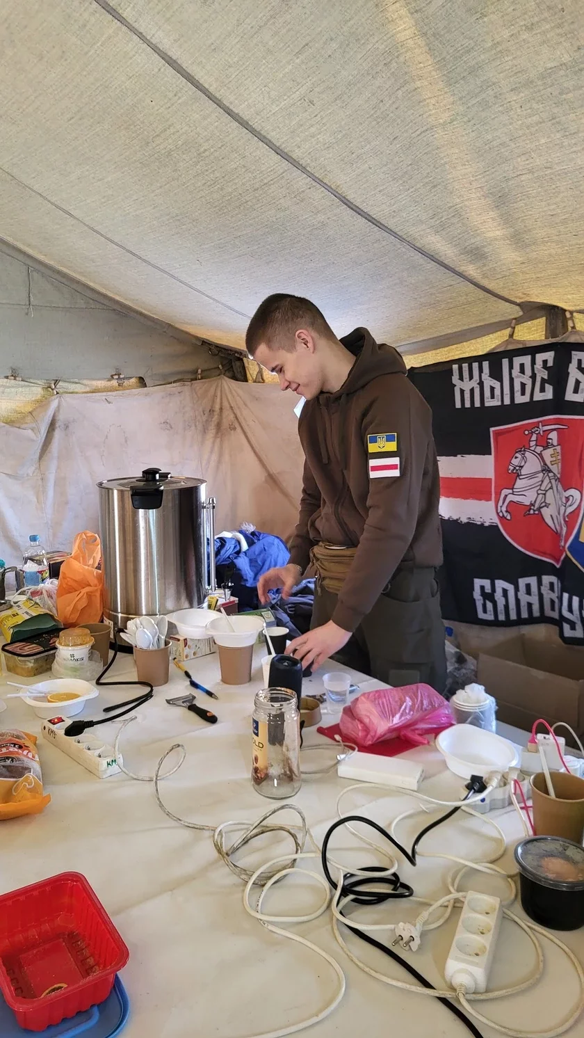 Теперь Алексей уже в Киеве. Пока решаются формальные вопросы с документами для службы, он помогает украинцам в пункте обогрева, который открыли белорусские волонтеры. Это место, где люди могут зарядить телефоны и получить тепло во время блэкаутов, стало для бывшего политзаключенного первым фронтом в этой войне.