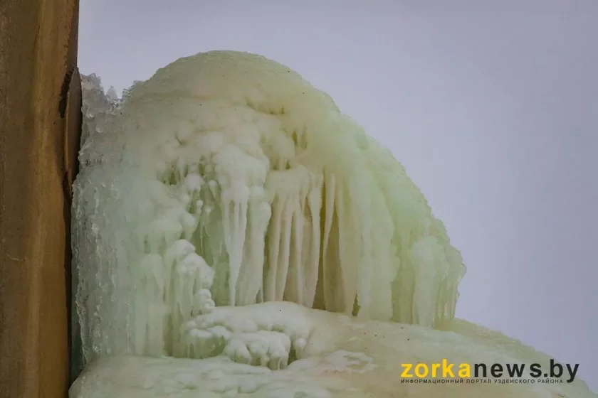 Около водонапорной башни в Узденском районе выросли причудливые ледяные фигуры. Они попали в объектив фотографа «Чырвонай зоркі».