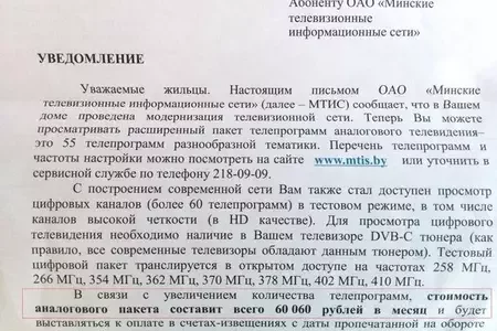 МТИС модернизирует сети: минимальная плата за кабельное ТВ резко повышается5