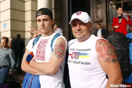 Белорусские болельщики прибывают во Львов на матч сборной в патриотической одежде47