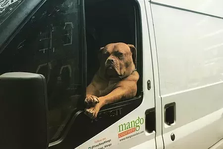 Крутой мастиф катается по Лондону в белом фургоне6