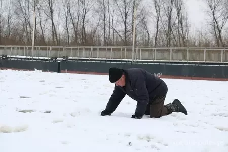Как ползком по льду через канал добираются люди в Давид-Городок6