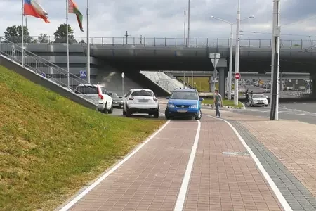 Работники бизнес-центра на проспекте Дзержинского в Минске паркуются на велодорожке ФОТОФАКТ10