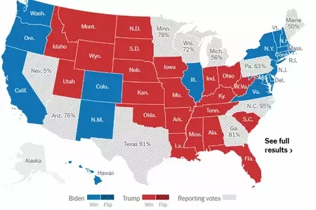 Выборы в США: Байден пока впереди по числу выборщиков, но Трамп лидирует в ключевых штатах