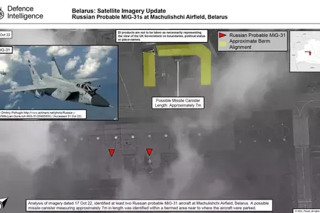 Разведка Британии показала МиГ-31 и возможный контейнер с «Кинжалами» под Минском1