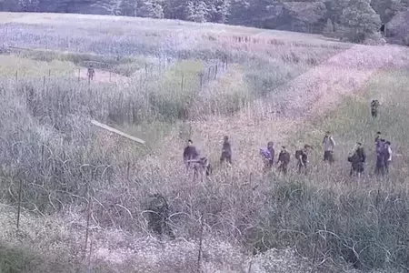 Мигранты забрасывают польских пограничников бревнами ВИДЕО2