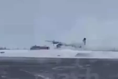 В России самолет выкатился за пределы взлетно-посадочной полосы и брюхом протаранил сугроб