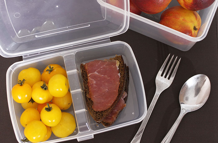 Калі абед дома не плануецца, то для ссабойкі трэба прадугледзець больш сытны варыянт. Падыдзе карысны бутэрброд: замест белага батона — жытнёвы хлеб (для разнастайнасці можна лаваш), замест кілбасы — запечаныя курыныя грудкі (або індычку, рыбу, сыр) і абавязкова гародніну і зеляніну. Масла часам можна замяняць на авакада. Такі карысны бутэрброд будзе вельмі апетытным і зручным.